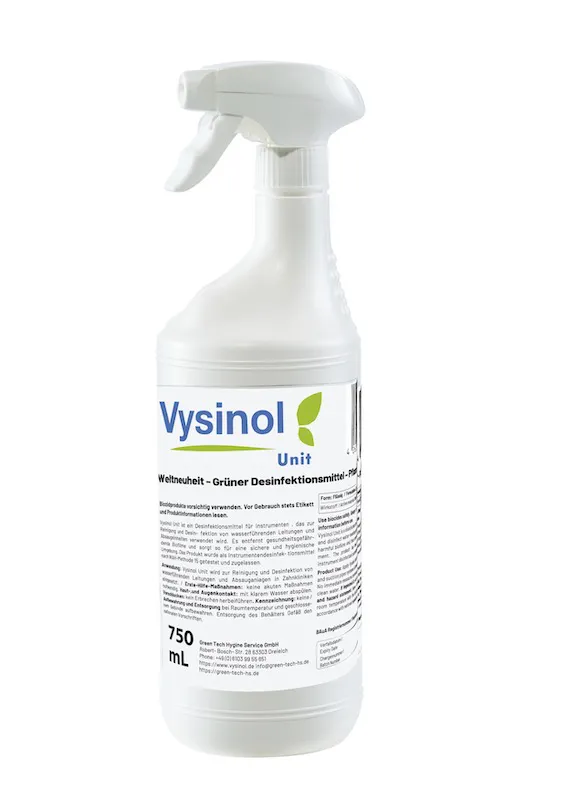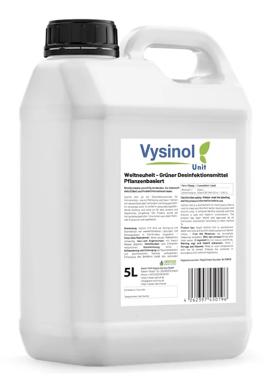 Vysinol Unit ist ein Desinfektionsmittel für Instrumente, das zur Reinigung und Desinfektion von wasserführenden Leitungen und Absaugeinheiten verwendet wird. Es entfernt gesundheitsgefährdende Biofilme und sorgt so für eine sichere und hygienische Umgebung.